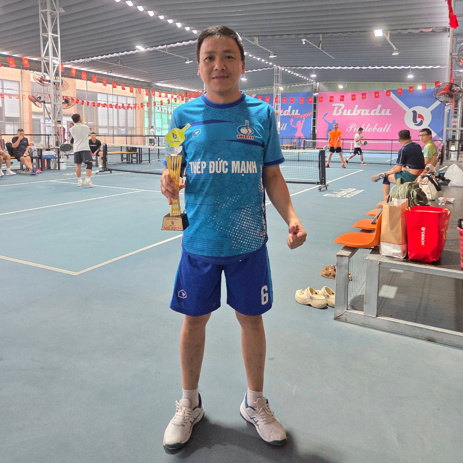 | Mã đăng ký | Thời gian đăng ký | VĐV1 | Điểm 1 | Điện thoại | VĐV2 | Điểm 2 | Điện thoại | Tổng Điểm | Mã bốc thăm | Duyệt đăng ký | Trạng thái đóng lệ phí | Thời gian checkin | Trạng thái | |